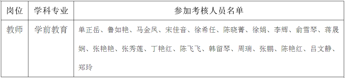在公开报名、资格审查的基础上,经研究,决定对教师教育学院的学前教育(教师)岗位人才招聘进行考核。具体事项通知如下: