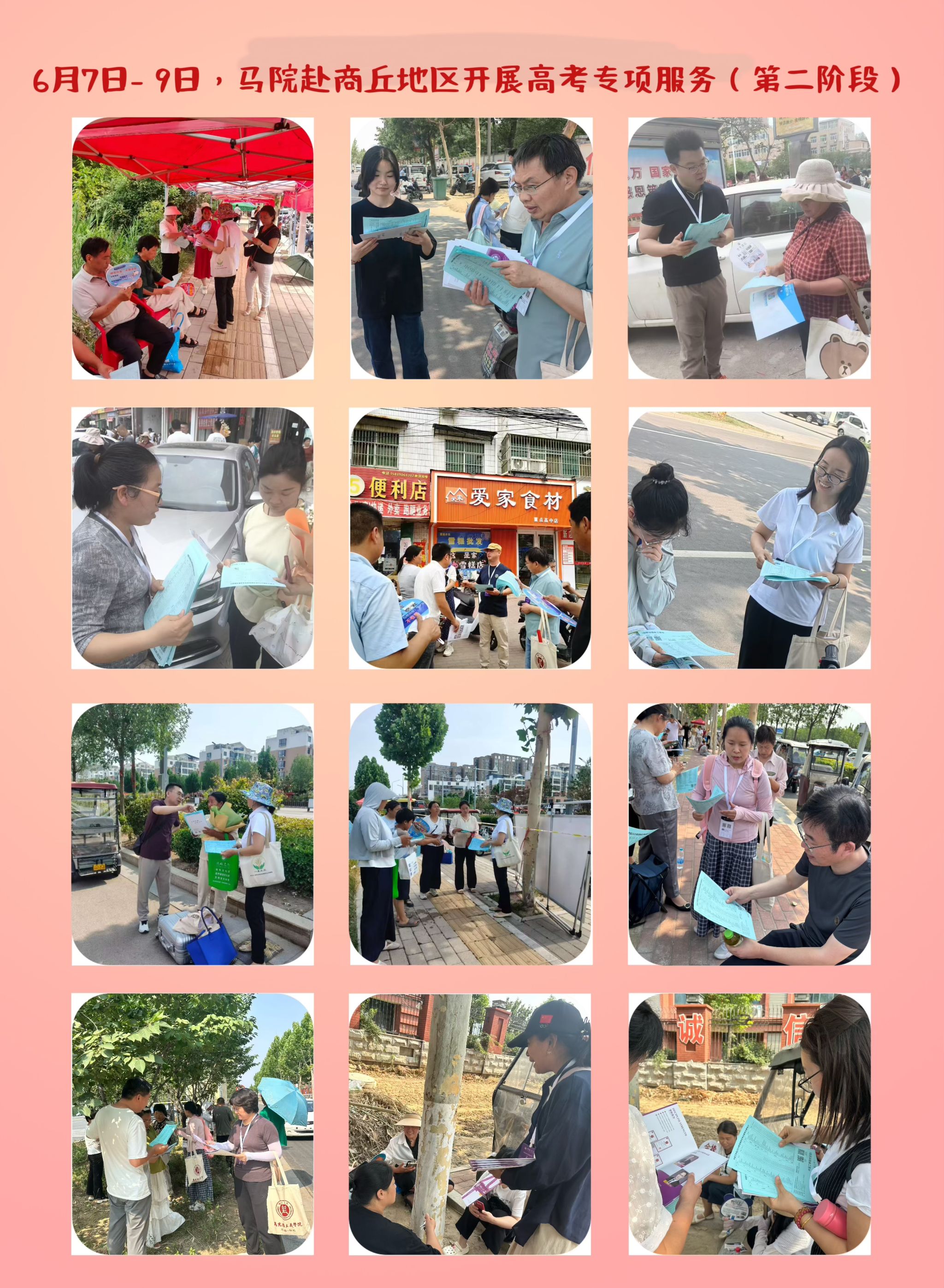 2025年6月7-9日高考期间,学院组队赴商丘地区高中开展第二阶段高考专项咨询服务活动。此次活动由总支书记赵茜带队,15名骨干教师参与,覆盖商丘市、虞城、宁陵、夏邑4县(市)8所高中。