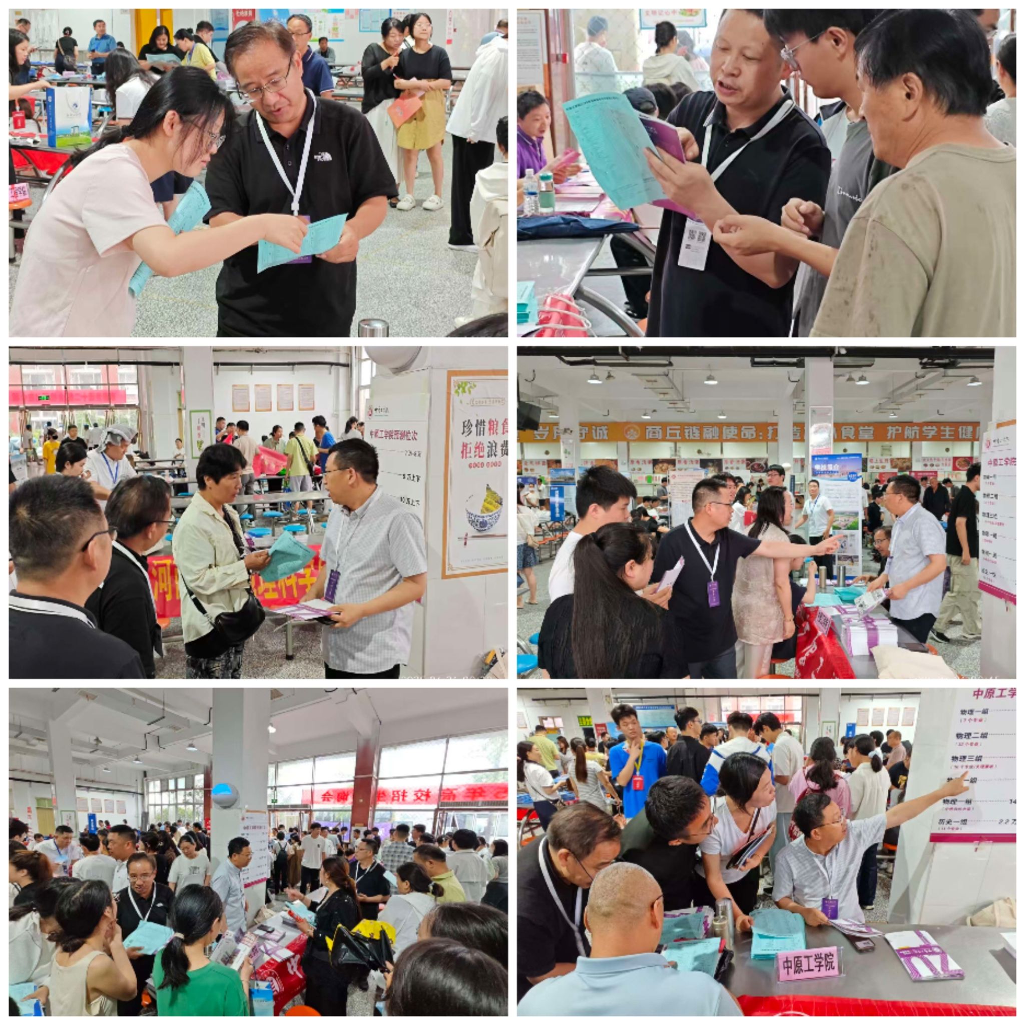 在夏邑县高级中学,招生老师结合学校的实际情况,详细介绍了学校的优势学科、专业设置、人才培养模式以及就业前景,针对家长和考生们关心的招生计划、录取规则、志愿填报等问题进行了耐心细致的解答。家长和考生认真聆听,积极提问,现场气氛热烈。