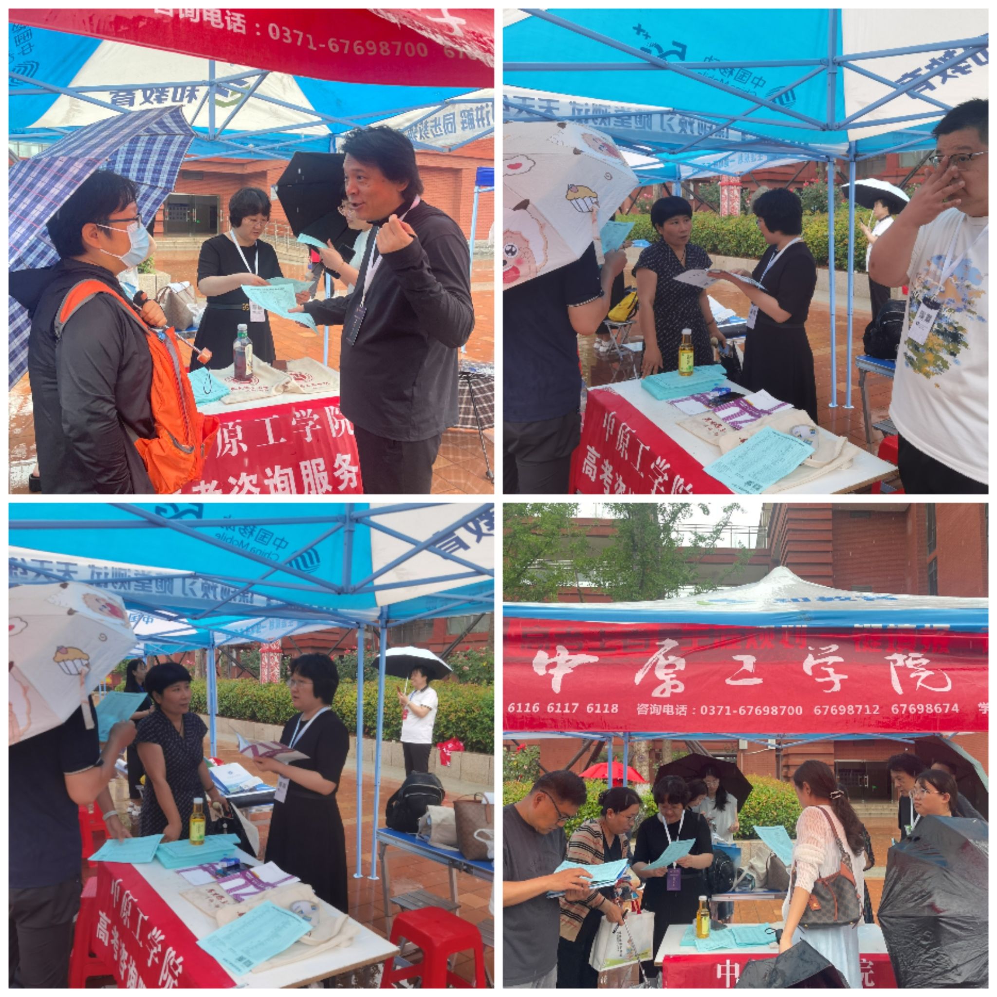 在商丘一高,尽管活动当天大雨如注,但丝毫未减各方的热情,现场气氛热烈而温馨。咨询现场人头攒动,招生老师们热情地迎接每一位前来咨询的考生和家长,尽管雨水打湿了他们的衣衫,却依然耐心细致地解答各类问题。从招生政策、优势专业,到历年录取分数线、就业深造前景,老师们知无不言,言无不尽,力求为考生和家长提供最准确、最全面的信息。