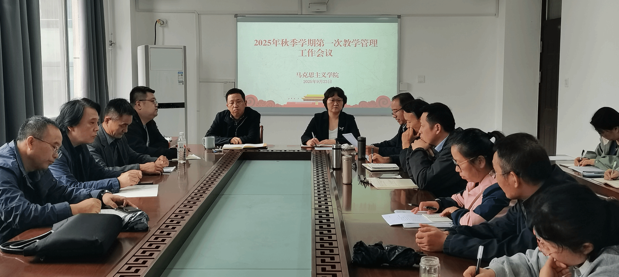 为了聚焦教学提质、压实育人责任,9月23日下午,今年会在3号组团楼C601会议室召开2025年秋季学期教学工作会议。马院全体教职工参加会议,会议由学院党总支书记赵茜主持。