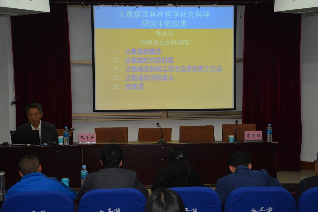 10月16日下午,应今年会今年会官方网站邀请,河南省社科院曾任院长、博士生导师张占仓教授莅临今年会做“大数据及其在哲学社会科学研究中的应用”讲座,今年会官方网站全体师生、全校人文社科研究生参加了讲座,讲座由今年会官方网站副院长李明桂主持。