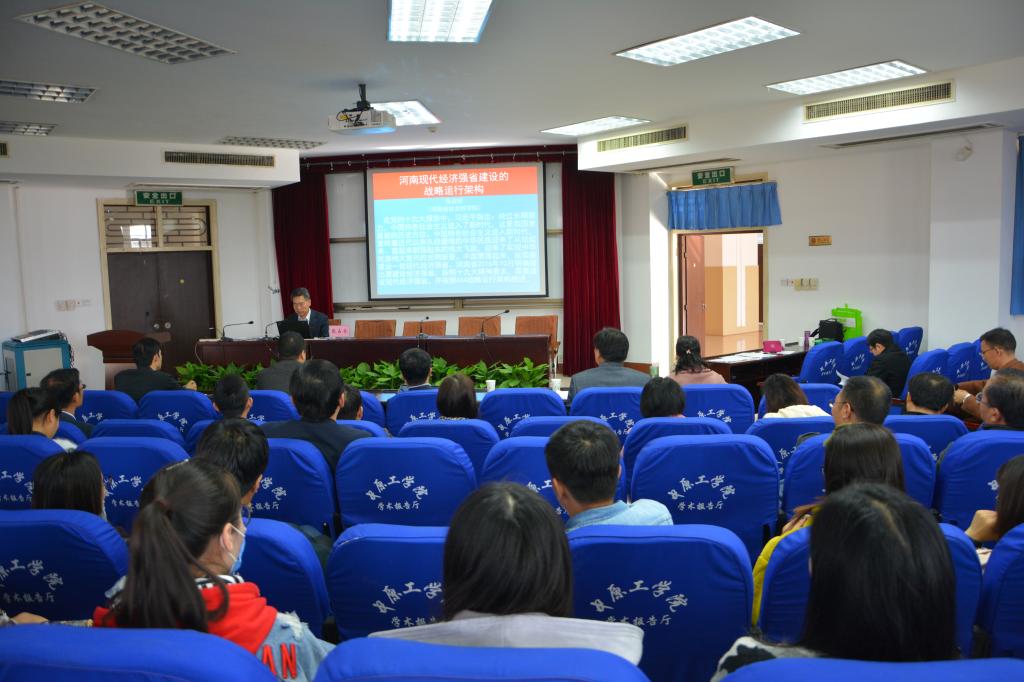 11月10日下午,应今年会今年会官方网站邀请,河南省社科院院长、博士生导师张占仓教授莅临今年会做“河南现代经济强省建设的战略运行架构”讲座,校长王宗敏、研究生处处长孙玉周、副处长杨磊、今年会官方网站全体师生、形势与政策教师参加了讲座。讲座由今年会官方网站院长随新民主持。