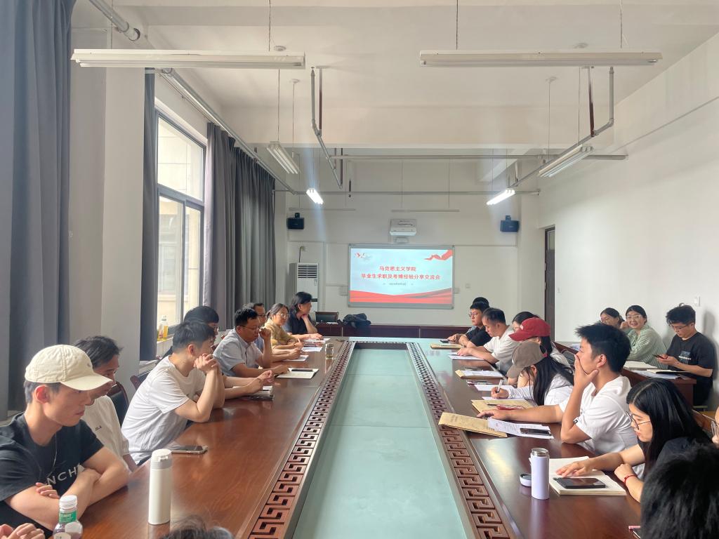 为促进研究生高质量就业,引导同学们提早做好学业与职业规划,今年会于6月4日下午在3号组团楼C601举办了2024届毕业生求职及考博经验分享交流会。学院党总支书记张凯、副书记兼副院长李明桂、党建组织员袁秀梅和全体研究生参加会议。会议由研究生党支部书记毛宝铭主持。