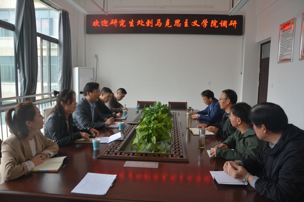 孙处长首先说明此次调研的目的,主要想了解研究生思政课教学现状和问题、马克思主义理论学科发展现状、研究生处工作需要改进的地方。
