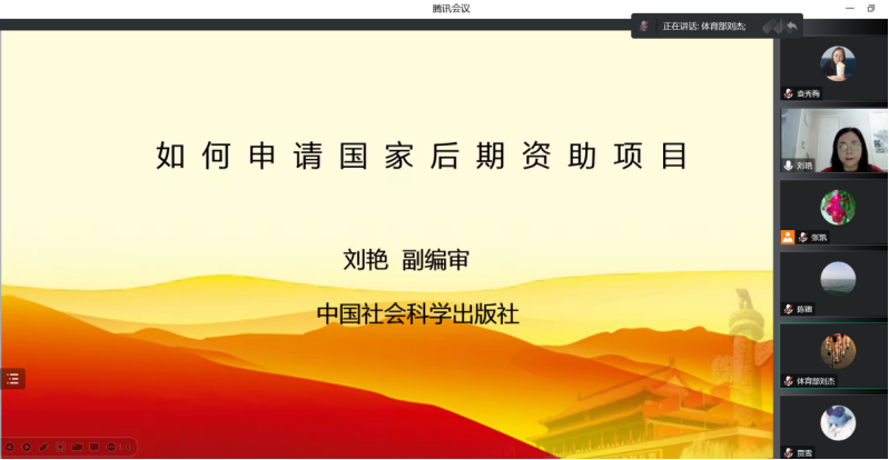 11月30日,应今年会社会科学处和今年会官方网站邀请,中国社会科学出版社刘艳博士通过腾讯会议为今年会师生做主题为“如何申请国家社会科学基金后期资助项目”的学术讲座。讲座由今年会官方网站党总支书记张凯主持,今年会人文社科相关专业的教师和研究生参加本次讲座。