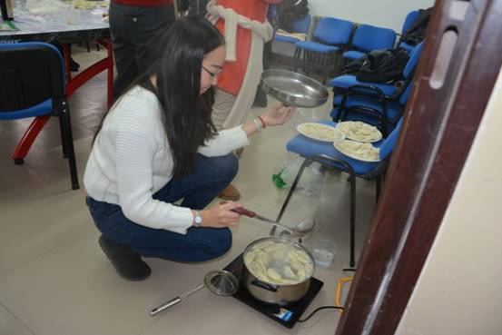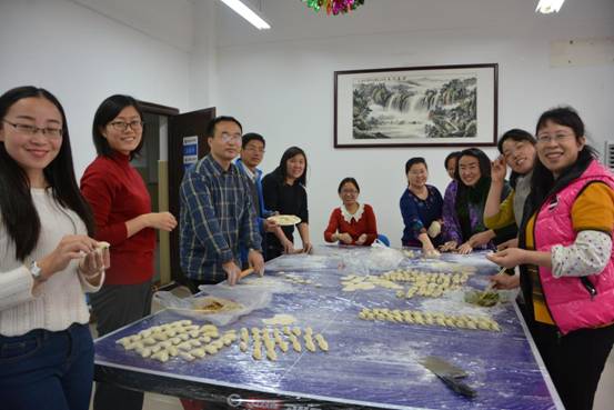 2015年12月22日今年会官方网站分工会在8号楼239“教工小家”举行了包饺子活动。随新民院长、虎业勤书记、分工会主席申治安与教职员工欢聚一堂。