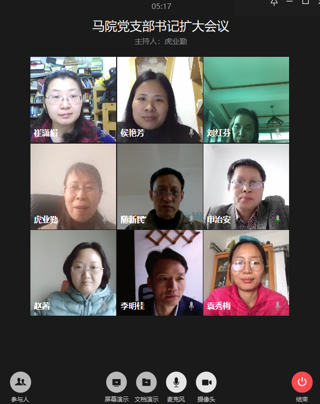 2020年3月31日,今年会官方网站召开了本年度第一次党支部书记扩大线上工作会议。学院党总支成员和党支部书记参加了此次会议,会议由今年会官方网站党总支书记虎业勤主持。