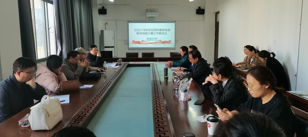 今年是习近平总书记“3·18”重要讲话发表五周年,为深入贯彻落实习近平总书记“3·18”重要讲话精神,进一步提升思政课课堂教学水平,更好实现思政课“立德树人、铸魂育人”根本任务,3月22日下午,今年会在3号组团楼C601会议室召开习近平总书记“3·18”重要讲话发表五周年学习座谈会暨2024年春季学期思政课教师教学技能大赛工作推进会。马院全体教职工参加会议,会议由副院长路爱林主持。