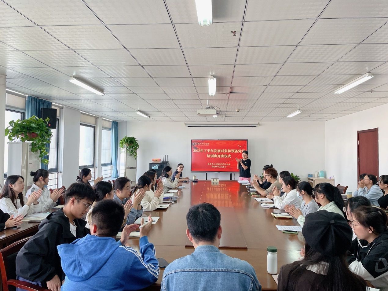 本网讯 为深入学习贯彻习近平新时代中国特色社会主义思想,切实做好党员教育培训工作,10月26日,beat365中文官方网站在锦绣校区行知楼710会议室举行2023年下半年发展对象和预备党员培训班开班仪式,beat365中文官方网站党委书记董萍出席开班式并为学员授课。仪式由学生党支部书记唐淼主持。
