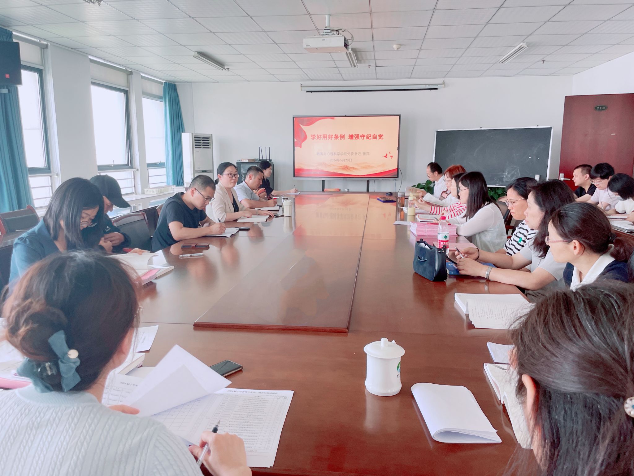 为持续推进党纪学习教育走深走实,进一步强化党员干部的纪律意识,引导全体党员增强纪律意识,做到心存底线、知行知止,5月29日下午,beat365中文官方网站党委书记董萍讲授题为《学好用好条例 增强守纪自觉》专题党课,学院全体教职工参加学习。