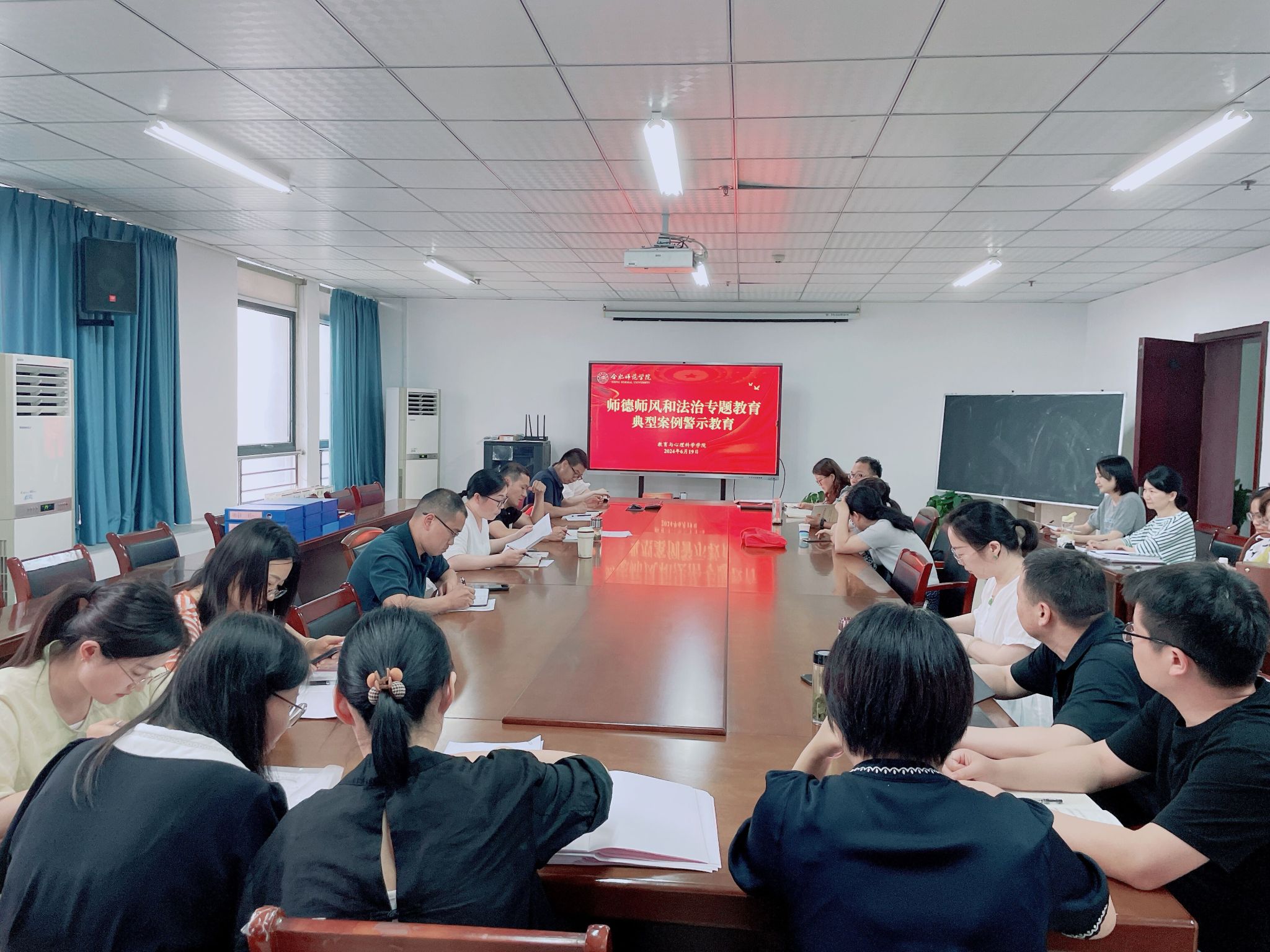 会议开展了典型案例警示教育,通报了国家自然科学基金委员会2024年不端案件处理结果(第一批次)、教育部公开第十三批7期违反教师职业行为十项准则典型案例、安徽省通报违反高等教师职业行为十项准则典型案例等。结合当前正在开展的党纪学习教育及学院党纪学习教育读书班安排,全体教职工共同观看了警示教育片《持续发力 纵深推进》第三集《强化正风肃纪》。