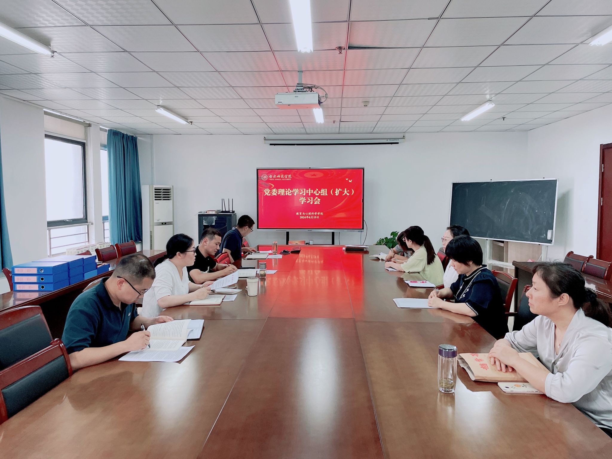 6月19日下午,beat365中文官方网站在行知楼710会议室举办党纪学习教育读书班集中交流研讨暨结业式。学院领导班子、党委委员、党支部书记参加学习研讨,会议由学院党委书记董萍主持。