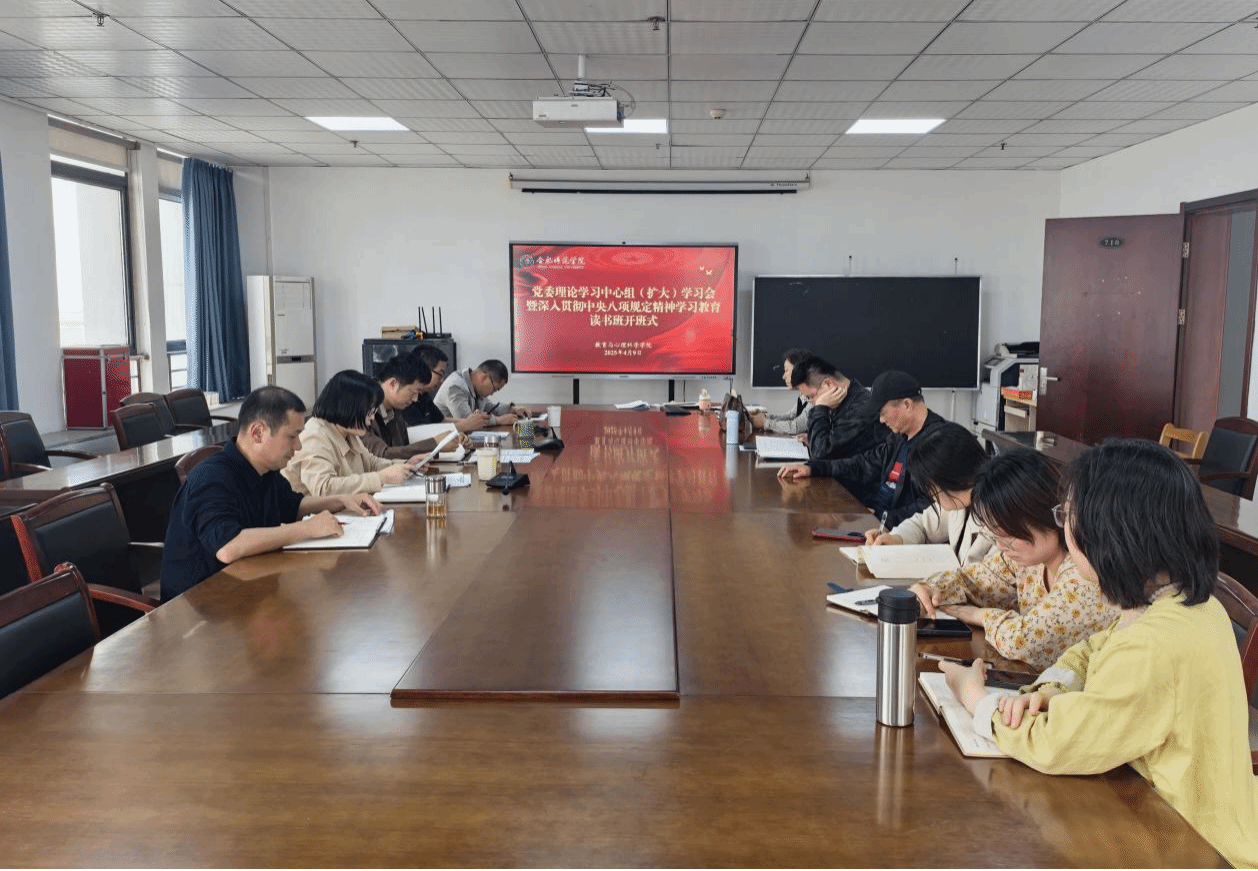 4月9日下午,beat365中文官方网站在710会议室召开党委理论学习中心组(扩大)学习会暨深入贯彻中央八项规定精神学习教育读书班开班式,党委理论学习中心组全体成员参加学习,会议由党委书记董萍主持。