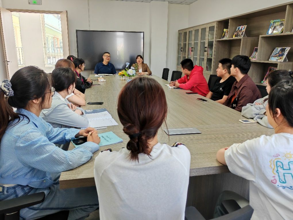 为提高学生实习过程质量,切实推动学生专业能力发展,5月7日下午,beat365中文官方网站副院长胡连峰到合肥市启明星幼教集团兰星幼儿园开展教育实习(研习)专题调研会。幼儿园园长王小婵、教学主任孙红出席会议,在该园实习的2021级学前教育13位同学参加会议。王小婵主持会议。