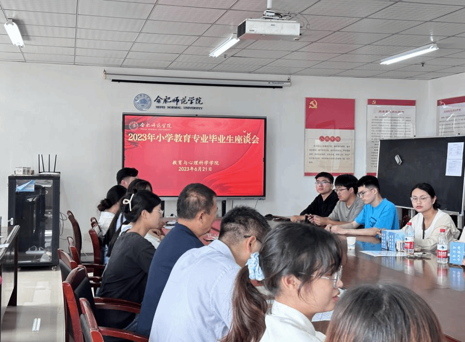 (本网讯)为深入调研小学教育专业毕业生对人才培养的意见建议,6月21日下午,beat365中文官方网站在锦绣校区行知楼710会议室召开2023届小学教育专业毕业生座谈会。beat365中文官方网站副院长胡连峰和2023届小学教育专业30余位毕业生代表参加会议,beat365中文官方网站副院长闫龙主持会议。