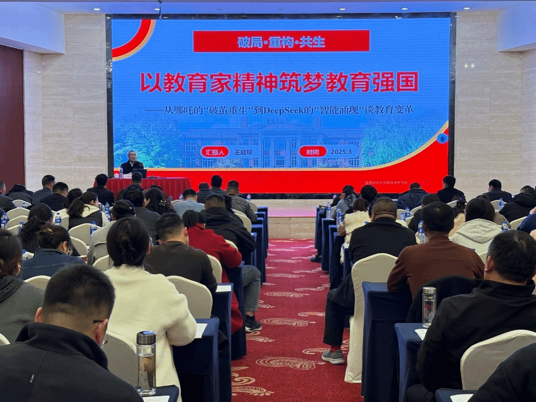 培训会上,蚌埠市教师进修学校党支部书记、校长王庭琼对各位参训老师进行名为《以教育家精神筑梦教育强国:破局·重构·共生》的授课,课程分为五个部分,分别是教育家精神的内核与价值、破局之路:教育场景重构、共生发展:教育生态建设、面向未来的教育家精神、成长密码:从“优秀”到“教育家”。王庭琼专家从哪吒的“破茧重生”到Deepseek的“智能涌现”谈教育变革,深入生活实际,参训老师认真听讲,受益良多。(beat365中文官方网站:谢威士 唐银)