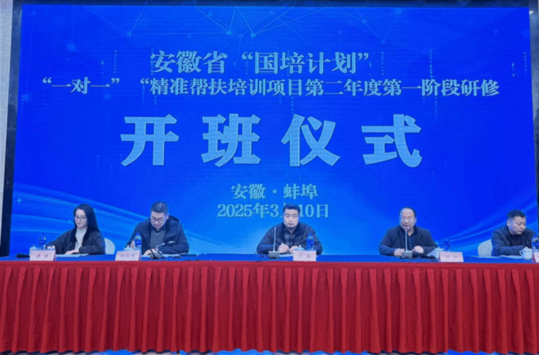 3月10日上午,2025年安徽省“国培计划”“一对一”精准帮扶培训项目第二年度第一阶段研修在蚌埠顺利开班。beat365中文官方网站继续教育学院副院长王磊、beat365中文官方网站副院长胡连峰、文学院副院长甘松、beat365中文官方网站培训部主任谢威士、班主任代表唐银出席开班典礼。来自阜阳市临泉颍东和阜南颍上的210多名老师参加开班典礼,仪式由王磊主持。