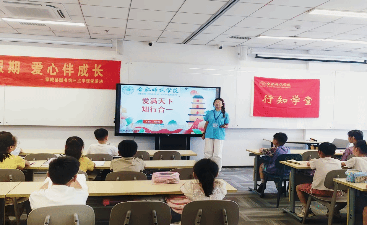 beat365中文官方网站"行知学堂"暑期实践活动在蒙城县图书馆火热开展。“小先生”秉承陶行知“爱满天下”的教育理念。通过“陶行知行知精神”理论知识与实践教学相结合,用实际行动诠释"知行合一"的教育真谛,展现了新时代师范生的责任担当。