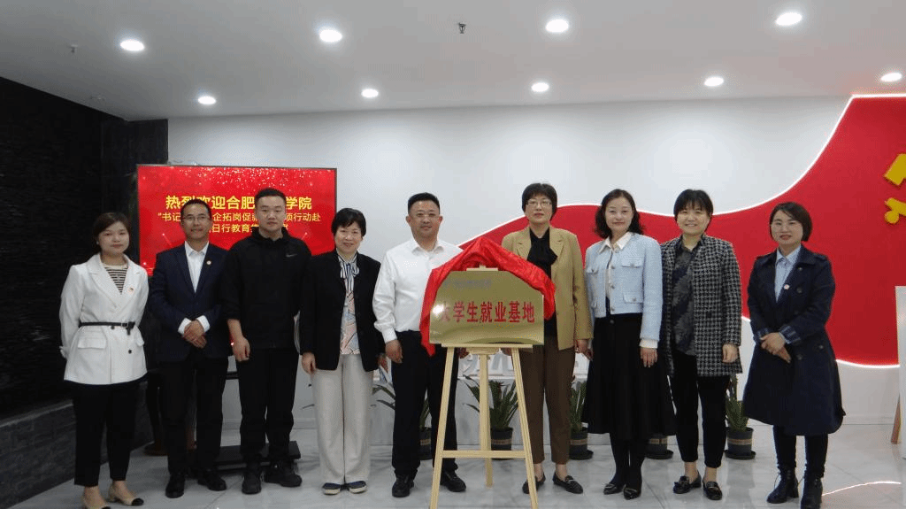 在签约授牌仪式上,方东玲、曹玉峰为安徽日行教育集团大学生就业基地揭牌。李群、曹玉峰签署了共建毕业生就业实习基地合作协议。