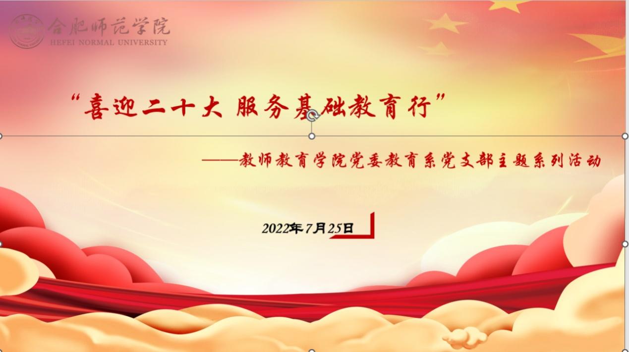 在庆祝中国共产党成立101周年之际,教师教育学院教育系支部组织开展“喜迎二十大,服务基础教育行”系列活动,强化党建引领,服务基础教育。7月25日,教师教育学院教工支部书记汪昌华教授主持合肥基础教育研究院揭榜挂帅重点项目 “合肥市中小学校五育融合的实现途径研究”推进会,在beat365中文官方网站附属实验小学召开。