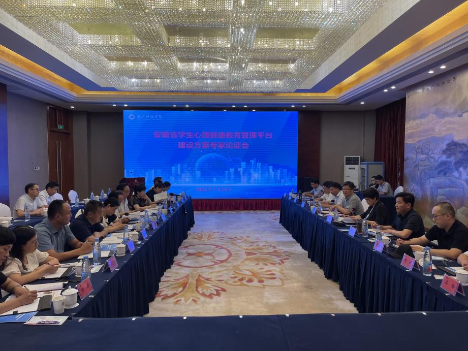 为贯彻落实《安徽省委教育工委安徽省教育厅关于“安徽省学生心理健康教育管理平台”立项建设的通知》(皖教秘管[2022]30号)精神,扎实推进安徽省学生心理健康教育管理平台建设工作,7月10日下午,安徽省学生心理健康教育管理平台建设方案论证会在合肥天鹅湖大酒店会议中心召开。会议邀请了中共安徽省委教育工委副书记王佩刚、安徽省教育厅思政处处长王后林、安徽省教育厅学校安全管理处副处长储修杰、安徽省教育厅学生处副处长查晓陆、中国科学技术大学计算机学院周熙人研究员、合肥工业大学信息化建设与发展中心主任胡东辉教授、安徽省高校网络思想政治工作中心常务副主任郑健以及省内多所高校学生心理健康教育中心主任和安徽省教育科学研究院、合肥市教育科学研究院心理健康教育研究员等担任评审专家,学院院长方东玲教授出席并主持会议,平台负责人姚本先教授及教师教育学院和计算机学院的部分教师参加了此次论证会。