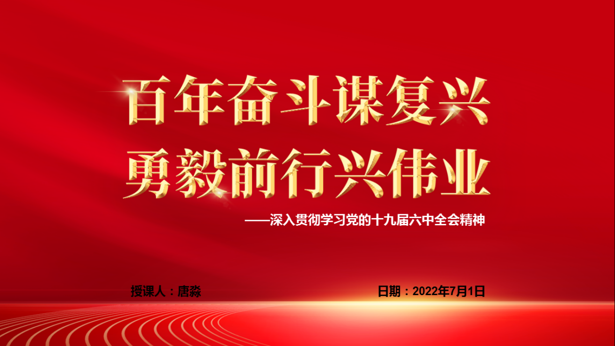 会上,唐淼首先就建党101周年进行了党史学习教育再动员,向全体党员和预备党员强调党史学习教育的重要性和必要性。随后,唐淼以深入学习贯彻党的十九届六中全会精神为契机,以“百年奋斗谋复兴,勇毅前行兴伟业”为题,从镌刻史册的伟大飞跃、气象万千的伟大时代、永葆初心的大党担当、开创未来的行动指南四个方面进行详细介绍。
