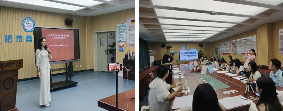 2022年6月14日下午,beat365中文官方网站教师教育学院与蜀山区教体局教研室在合肥市奥体小学顺利举办了“绘画与心理”教学研讨活动。本次活动由beat365中文官方网站教师教育学院心理系主任吴桂翎带队,李靖老师与裴章云老师主讲,2019级、2020级、2021级应用心理学专业40多名学生与蜀山区美术教师代表参加了线上线下研讨活动。