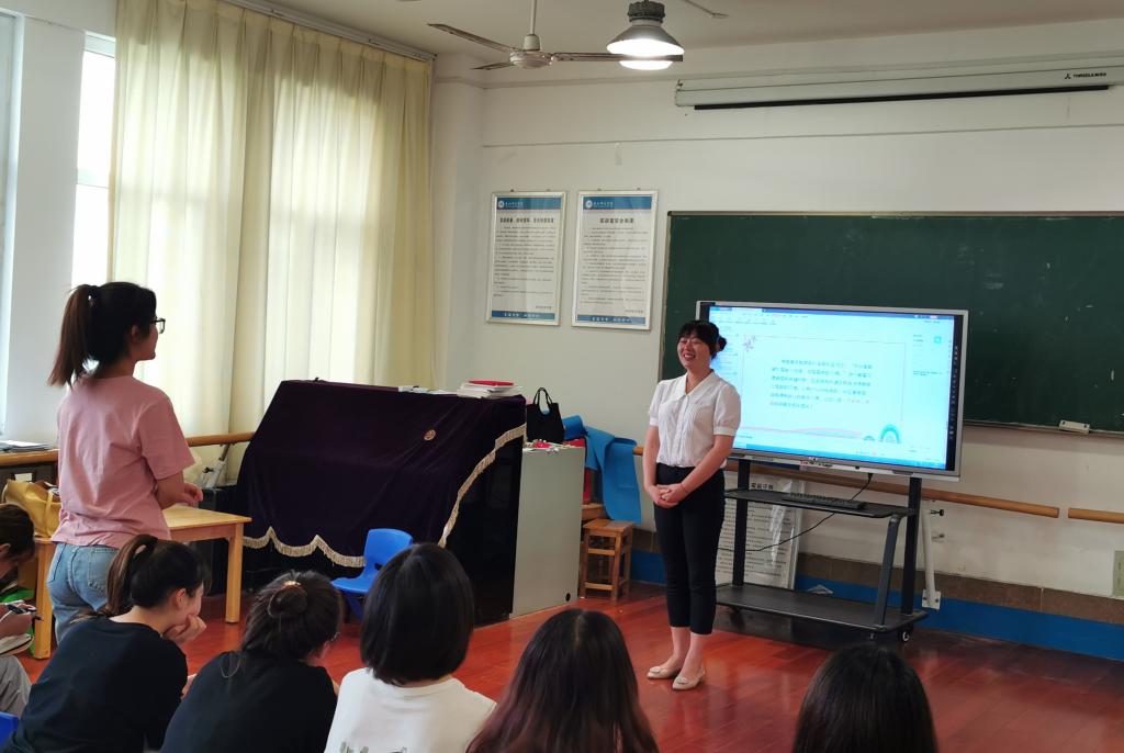 2021年9月15日下午,教师教育学院学前系邀请合肥市洞庭湖路幼儿园园长赵静为锦绣校区学前系学生做校内实习讲座,讲座主题:“幼儿园一日生活常规养成策略”。2018级学前教育中美合作班同学参加讲座。