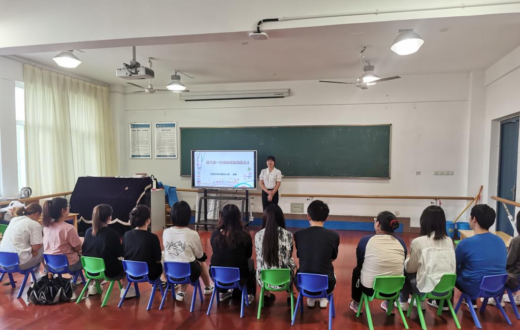 赵静首先以绘本《牵着蜗牛去散步》引出洞庭湖幼儿园的“放慢脚步,静待花开”的教育理念,并介绍了园徽“爱心蜗牛”的含义。随后通过案例的方式向同学们展示了洞庭湖幼儿园的特色活动——“好习惯养成主题教育活动”,这个园本特色活动让同学们深受启发。最后,赵静结合自生保教经历,向同学们详细介绍了在开展晨间活动、生活活动、户外活动、教学活动等四个方面时教师要做的事情和需要注意的问题,并给出相应的提升策略,让在场的同学们了解和熟悉了园所工作的相关流程,为即将开始实习活动的同学们提供了丰富的实践经验。讲座结束后,赵静就同学们提出的“幼儿吃饭很慢、教师该不该催促”“一些顽皮的孩子打老师,老师该怎么办”等具体问题给出了详细的解答。通过此次讲座与交流互动,学生们表示受益匪浅。(教师教育学院:孙延永)