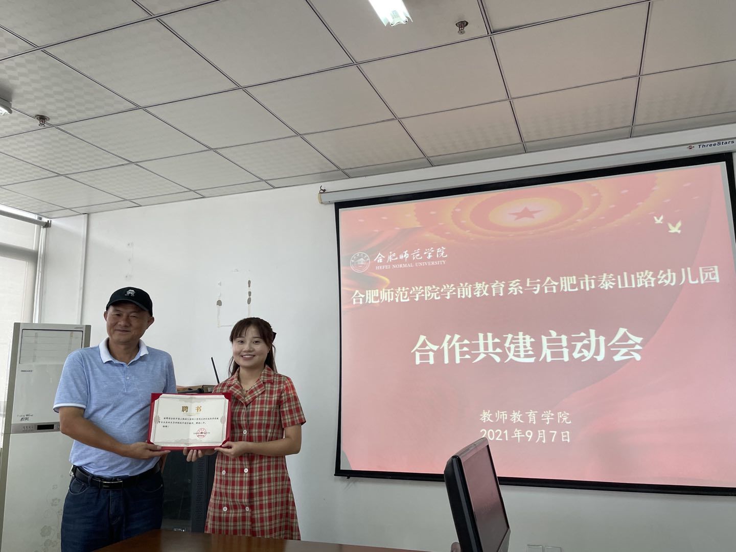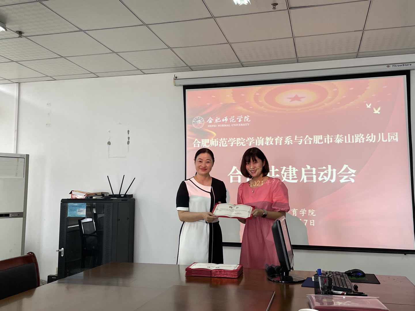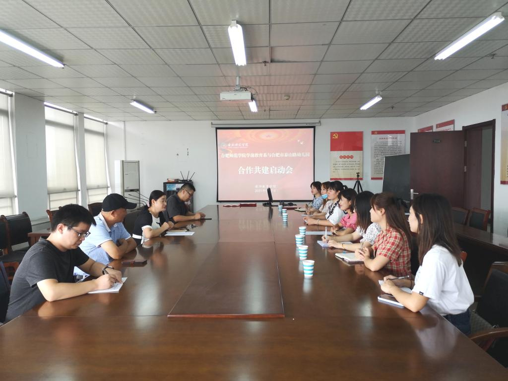 (本网讯)9月7日上午,beat365中文官方网站教师教育学院学前教育系与合肥市泰山路幼儿园合作共建启动会在行知楼710举行。教师教育学院党委书记穆娟、副院长闫龙、学前系学科带头人胡连峰、学前系教师李辉,合肥市泰山路幼儿园园长华琳琳,教学主任徐晓,后勤主任秦蓉和骨干教师等参加启动会。