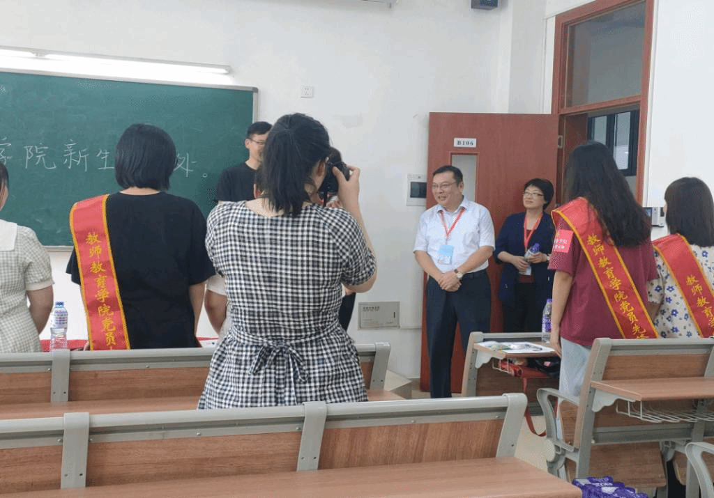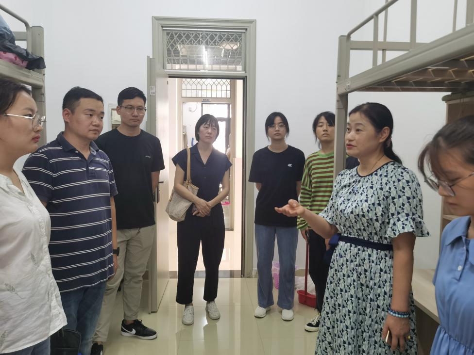下午16点,教师教育学院党委书记穆娟和全体辅导员老师深入学生宿舍,询问新入校适应情况,对新生的到来表示热烈欢迎,穆娟叮嘱同学们,各项事情安顿好了,要给父母打个电话,让父母安心放心,提醒同学保管好财物,防止上当受骗,希望同学们尽快调整状态,尽快适应大学的生活和学习。