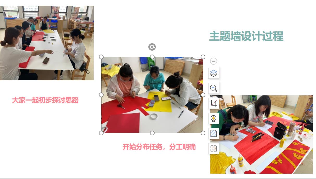 本次主题环创实践活动,学前教育专业师生将党史学习教育与专业学习紧密结合,引导师生在加强党史学习教育的同时,重点思考如何更好地落实立德树人根本任务,如何将党史学习教育更好地融入到专业教育中。教师引导大学生在参与主题环创实践过程中亲自动手操作、主动探究、亲身体验,并不断反思提升,不仅创新了实践育人的模式,让大学生在自我教育、自我管理、自我服务中不断成长成才,增强大学生社会责任感,引导大学生树立正确的价值观、党史观,同时将专业所学更好地融入幼儿园,融入到幼儿的生活与游戏中,加强幼儿爱国教育,传承红色文化。