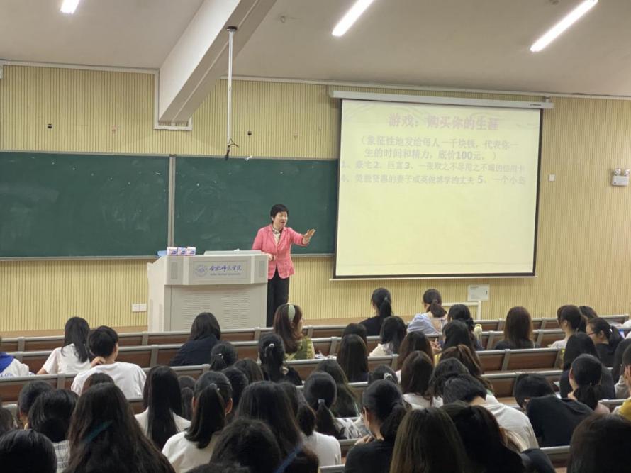 首先,李群让同学们做了个小游戏。她象征性地发给每人一千块钱,代表一生的时间和精力,自由竞拍自己觉得最有价值和意义的东西。大家踊跃参与,现场气氛十分热烈。游戏结束后,李群向同学们提出了四个问题:什么是目标?为什么要明确目标?应该树立什么样的目标?如何树立并不断接近目标?引发了同学们对未来的思考。
