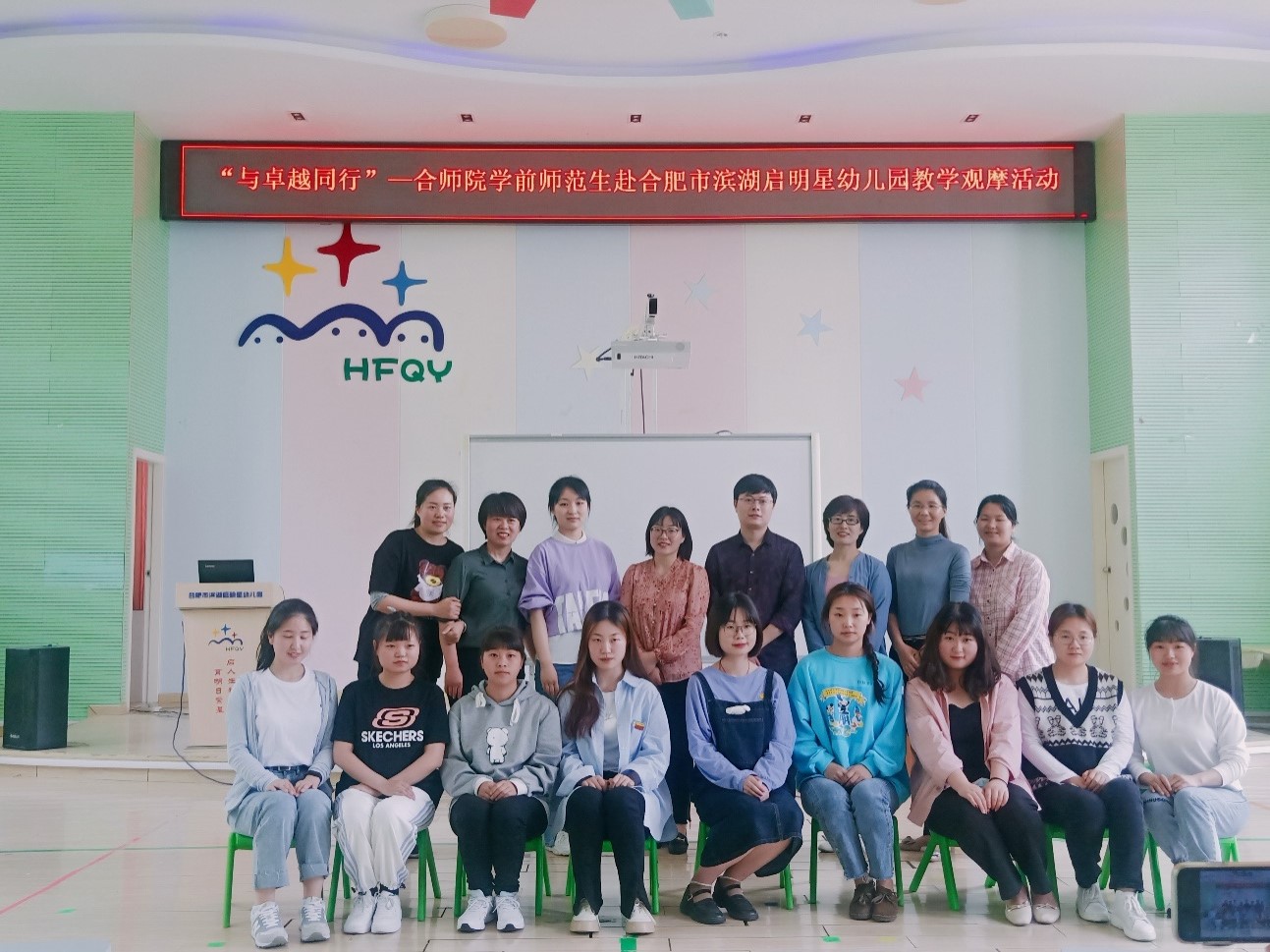 近日,为提升学前教育师范生的专业技能,促进与幼儿园的交流,教师教育学院第二党支部组织学前教育系师生赴合肥市滨湖启明星幼教集团参加为期三天的骨干教师教学观摩活动。