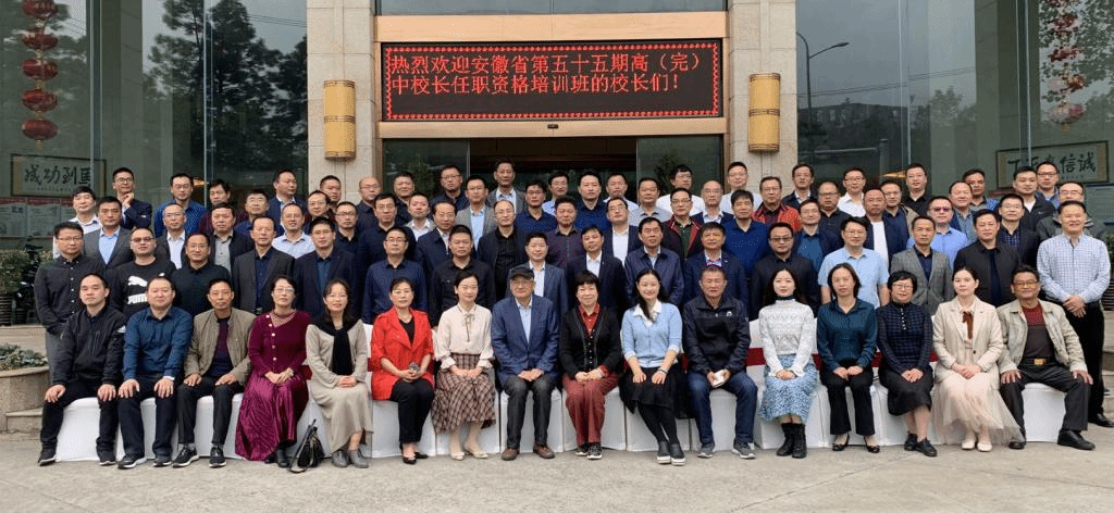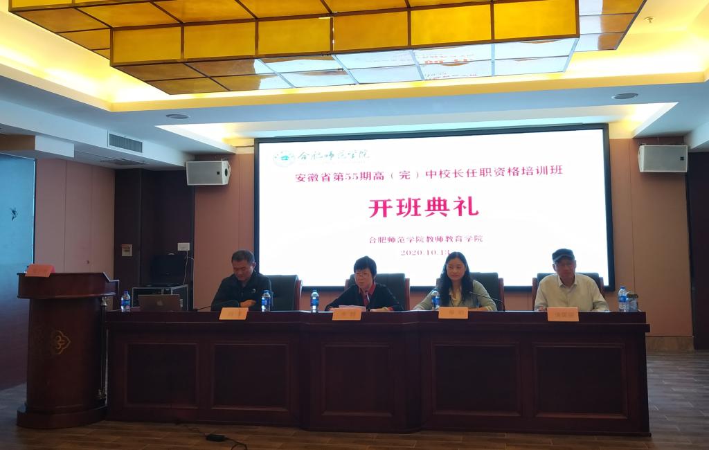 2020年10月13日上午,安徽省第55期高(完)中校长任职资格班在合肥市珍滨酒店举行了开班典礼。教师教育学院院长李群、学院党委书记穆娟、副院长闫龙、班主任谈儒强以及来自全省各地77位校长班全体学员参加了开班典礼。开班典礼由闫龙主持。