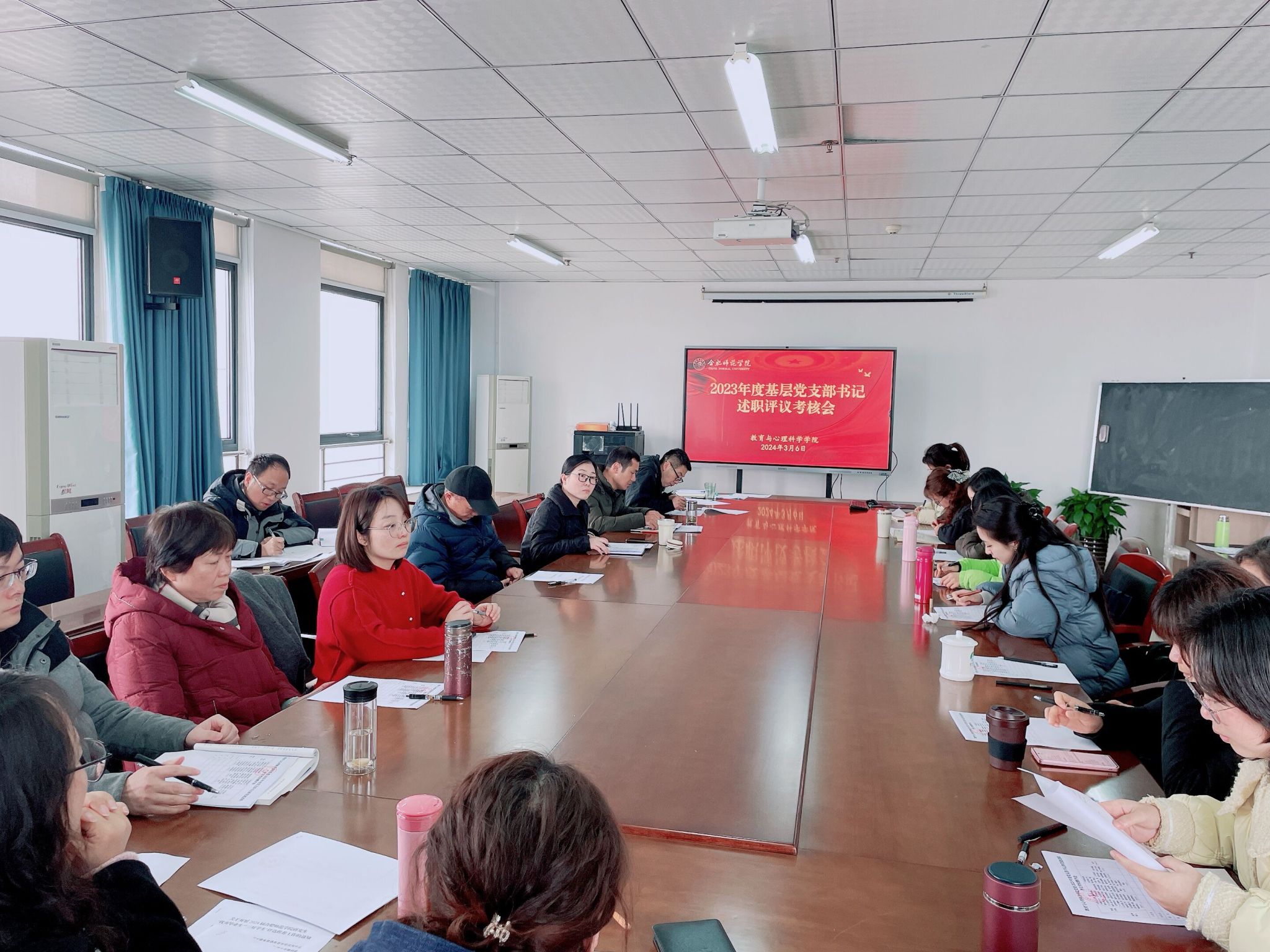 为深入学习贯彻习近平新时代中国特色社会主义思想和党的二十大精神,beat365中文官方网站党委于3月6日下午在行知楼710会议室组织召开基层党支部书记抓党建述职评议考核大会,会议由学院党委书记董萍主持。学院党委委员、秘书,分工会、分团委负责人,党支部委员、党员师生代表参加会议。