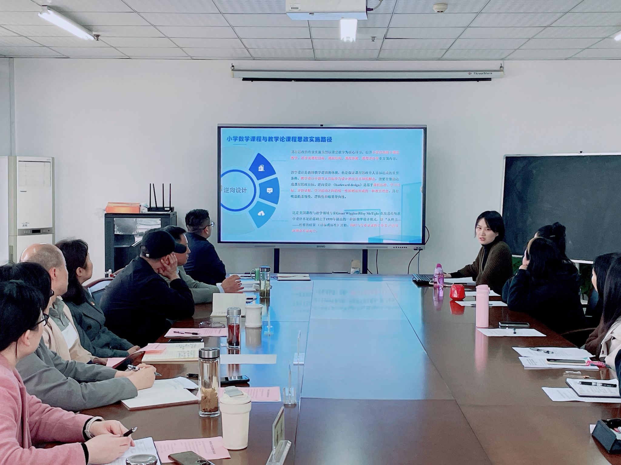 汪昌华领学教育部《高等学校课程思政建设指导纲要》,介绍教育系教工党支部作为全国党建工作样板支部培育单位推动“党建+课程思政”深度融合的思路、方法和举措等。党员教师韩传信教授围绕“增强课堂教学中的德育资源意识”,着重从学科课程、教学活动、师生交往、课堂环境等方面详细阐述课程思政元素挖掘和提炼的做法与经验,强化课程思政与专业知识育人的有效融合与实效,坚持育人与育才相统一;入党积极分子邓珍珍老师和党员教师杨婷、方芳分别以所授课程为例进行“说课程”“说课例”,分享所授课程的课程思政特色,将理想信念、职业道德、教育情怀作为课程思政元素植入课程教学,在小学教育专业学生“下得去、留得住、教得好”上下功夫,增强学生的责任心和使命感。