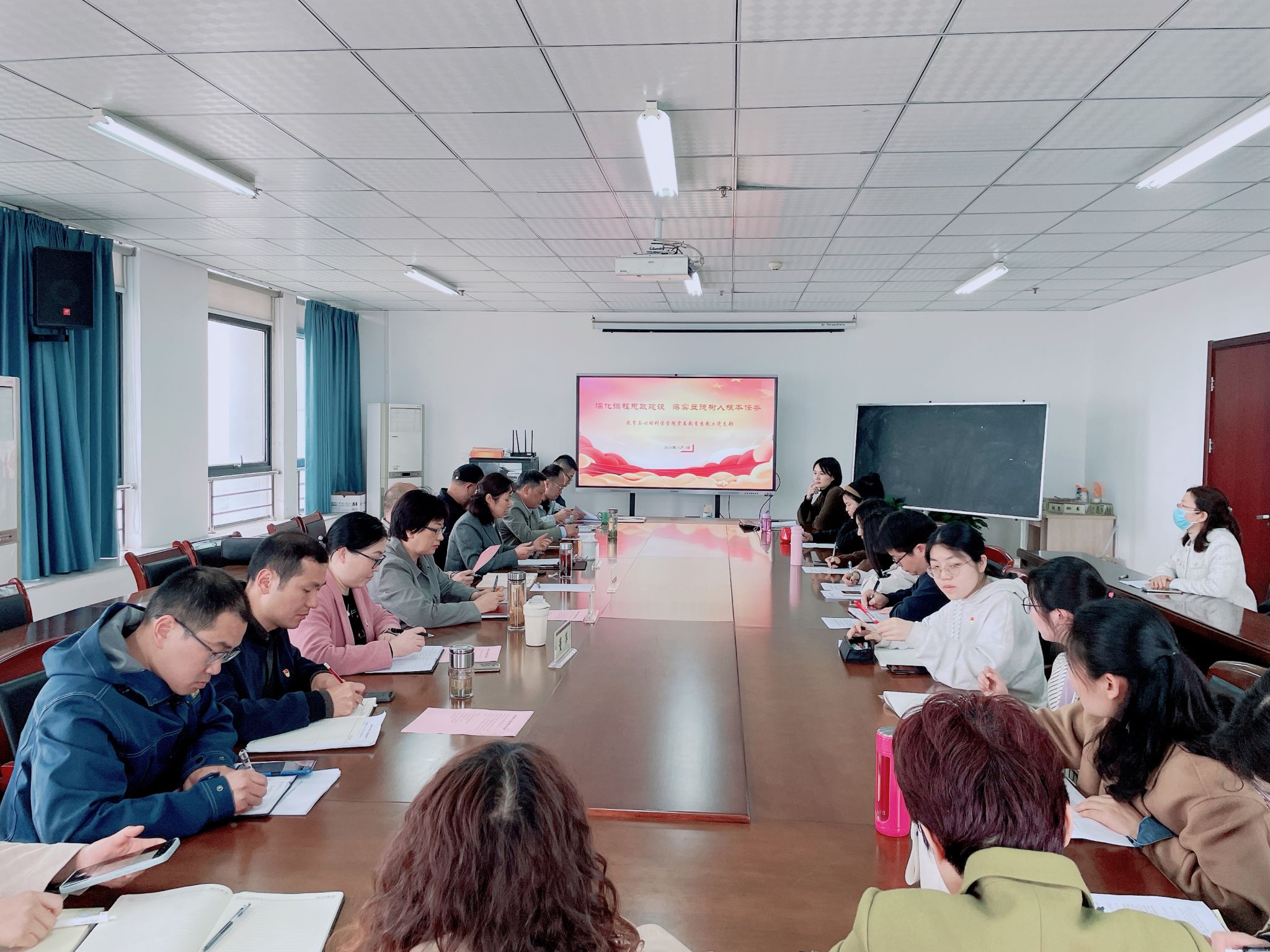 为深入学习贯彻习近平新时代中国特色社会主义思想和党的二十大精神,促进党建与事业深度融合,充分发挥基层党组织的战斗堡垒作用和党员的先锋模范作用,4月3日下午,教育系教工党支部在行知楼710会议室开展“深化课程思政建设 落实立德树人根本任务”主题党日活动。院党委副书记、院长方东玲,机关第二党委书记、马克思主义学院教授陶有浩到场指导。beat365中文官方网站党委,学前教育系教工党支部、心理系教工党支部、学生党支部等支部书记、副书记,教育系教工党支部全体党员和入党积极分子代表,学生第一党支部学生党员代表等参加会议。会议由教育系教工党支部书记汪昌华主持。