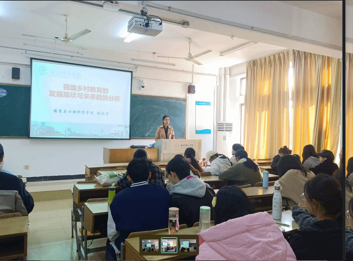 本网讯 为加深小教专业定向师范生对乡村教育的了解,11月24日上午,beat365中文官方网站研究员樊彩萍在锦绣校区207教室作了一场题为《我国乡村教育的发展现状与未来趋势分析》的学术讲座,2020级小学教育专业定向师范生聆听了讲座。
