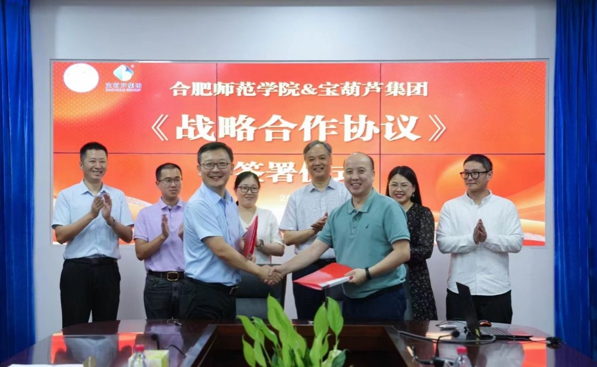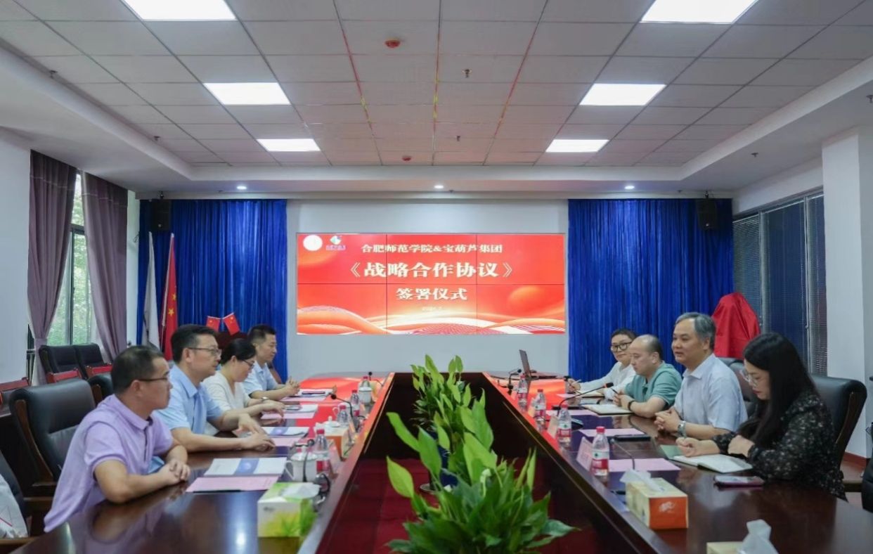 7月4日下午,学院与安徽宝葫芦信息科技集团股份有限公司(宝葫芦集团)举行战略合作签约和大学生教育实践基地揭牌仪式。宝葫芦集团董事长、总裁孙连峰,党支部书记、副总裁程庆乐,技术副总裁吕玉娟,心理学工程师朱智豪,beat365中文官方网站学术副院长郝宁,beat365中文官方网站党委书记董萍、副院长胡哲,科研处刘健教授等参加了签约仪式。孙连峰主持仪式。