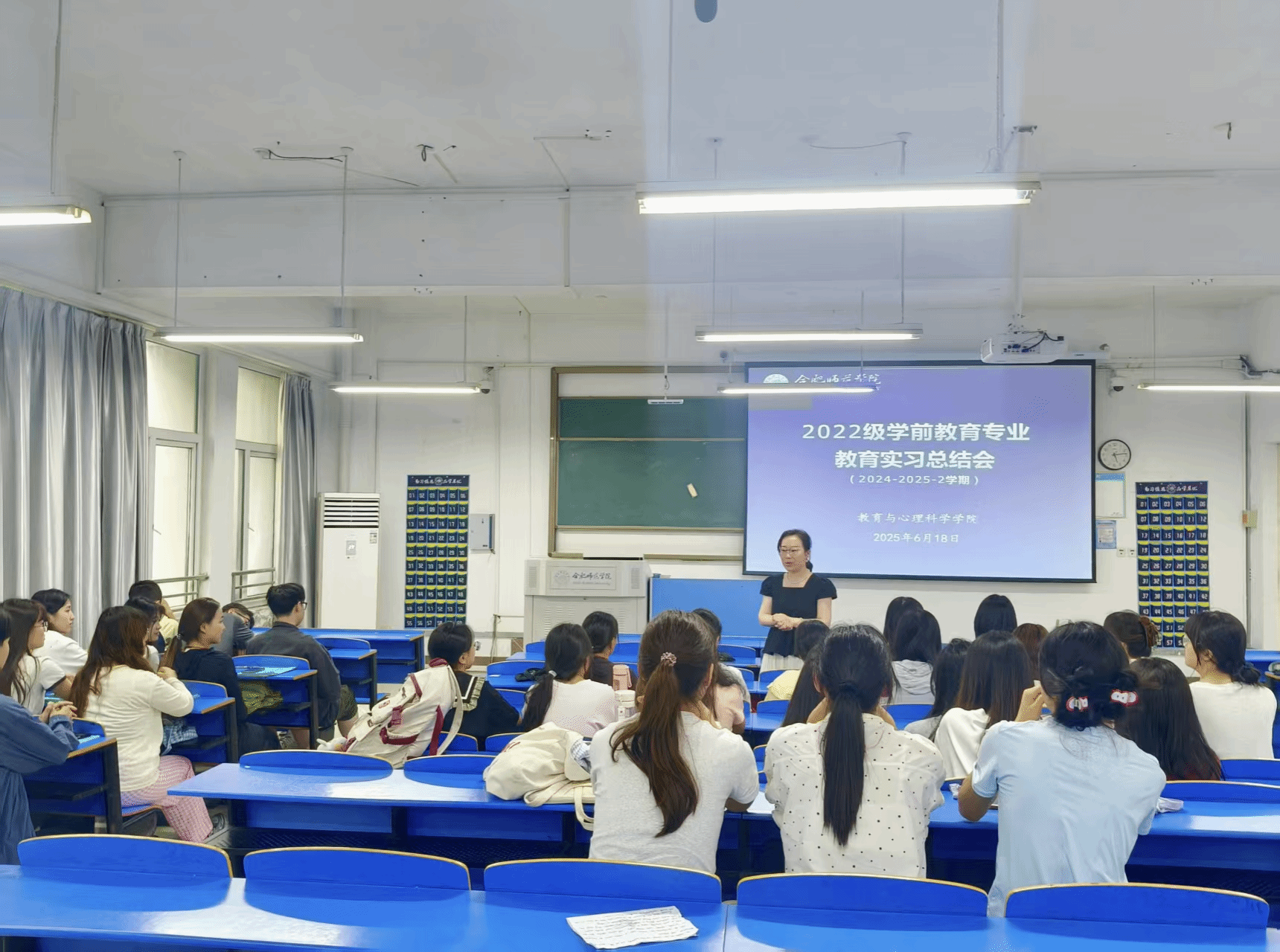 6月18日下午,beat365中文官方网站学前教育系在锦绣校区逸夫楼A107教室召开2022级学前教育专业教育实习(研习)总结汇报大会。beat365中文官方网站学前教育系主任孙延永、全体实习带队教师出席会议,2022级学前教育专业全体学生参加会议,会议由学前教育系副主任蒋晨晓主持。