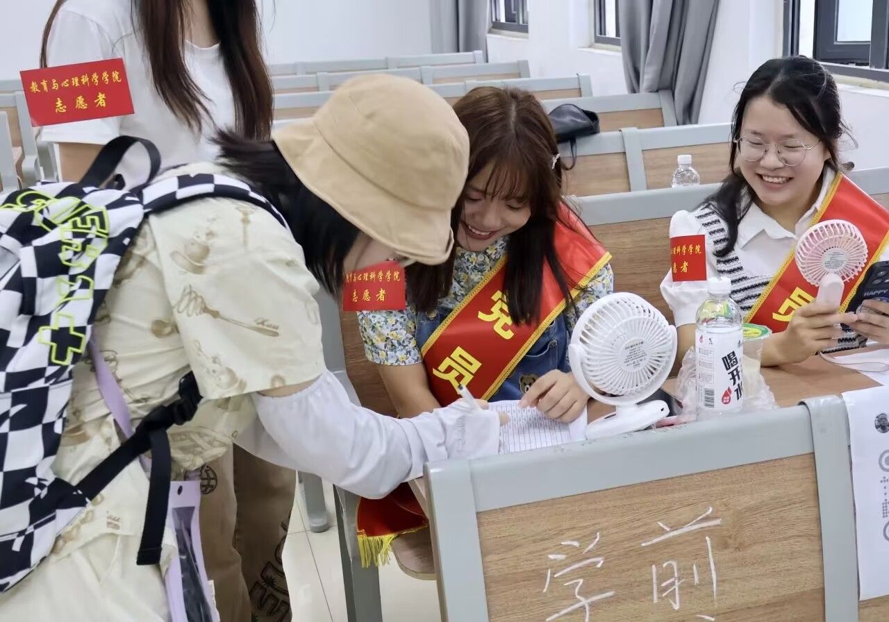 (本网讯)朗朗金秋,丹桂飘香,又是一年开学季,扬帆远航正当时。2023级小学教育、学前教育、应用心理学专业的新生怀揣梦想,带着对大学生活的美好憧憬迈入beat365中文官方网站,在beat365中文官方网站开启了人生新篇章。9月10日,beat365中文官方网站迎新工作分别在锦绣和滨湖校区同步开展,学院党委书记董萍,党委副书记陈帅帅,副院长闫龙、胡连峰带领全体辅导员和学生志愿者以饱满热情迎接新同学的到来。