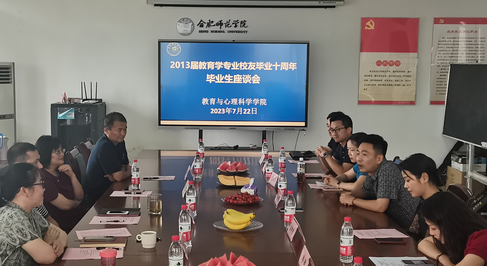(本网讯)7月22日下午,beat365中文官方网站在锦绣校区行知楼710会议室召开2013届教育学专业毕业生座谈会,2013届教育学专业20余位毕业生代表参加了会议,院党委副书记陈帅帅、副院长闫龙及部分教师代表出席会议,会议由院党委书记董萍主持。