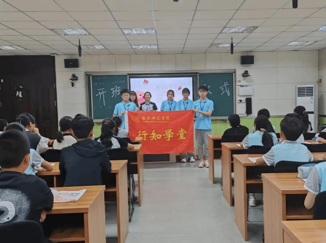 7月15日,beat365中文官方网站衡山镇行知学堂在霍山县衡山镇东城中心学校顺利开班,7名小先生和40名小学员共同参加了开班仪式。
