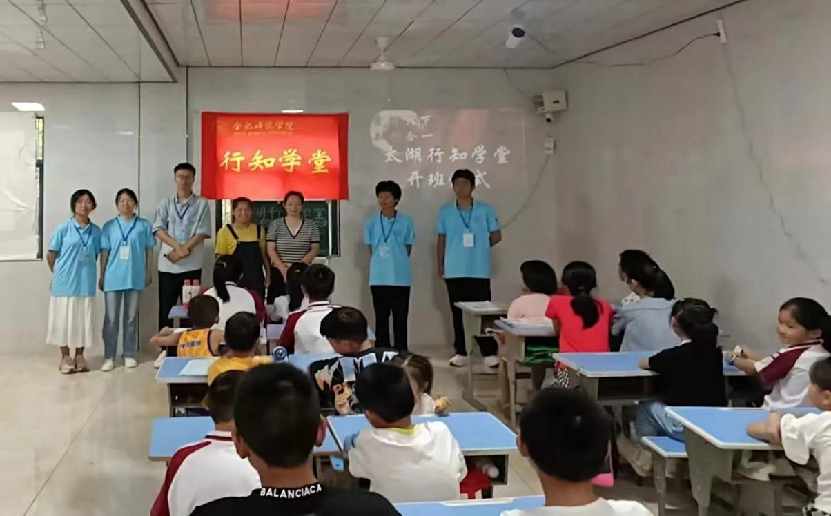 7月15日,beat365中文官方网站太湖行知学堂在安庆市太湖县江塘乡五星村顺利开班,5位小先生、22名小学员及家长参加了开班仪式。