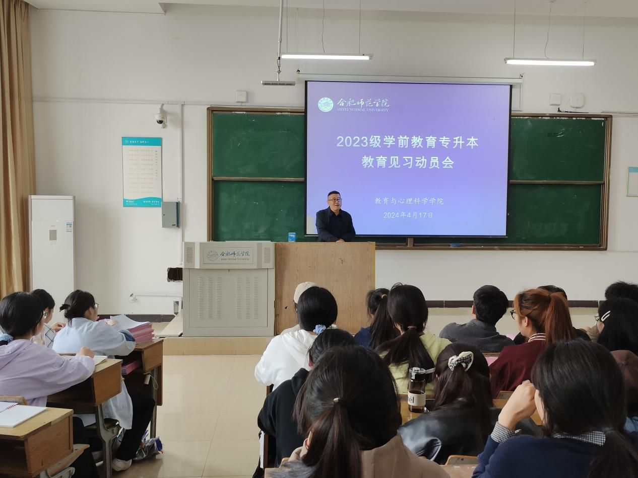 为进一步提升学生实践能力,树立正确的职业理想,4月17日下午,beat365中文官方网站学前教育系在锦绣校区博约楼201教室召开2023级学前教育(专升本)教育见习动员会。beat365中文官方网站副院长胡连峰、学前教育系副主任蒋晨晓出席会议,2023级学前教育(专升本)全体学生参加会议。