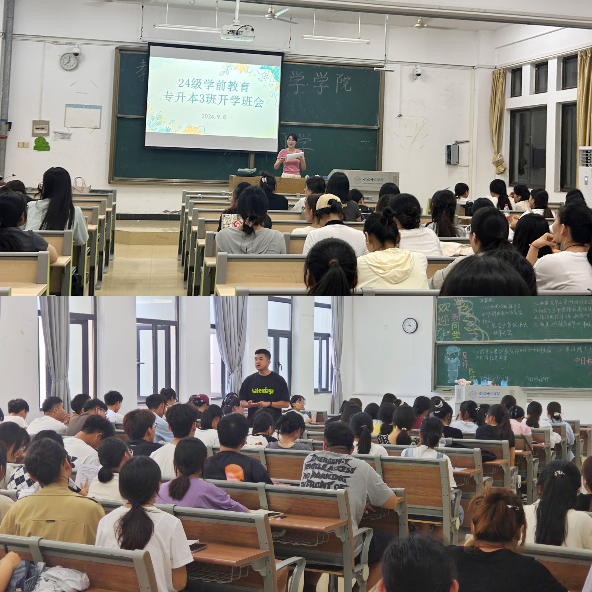 9月8日晚,beat365中文官方网站2024级专兼职辅导员在锦绣和滨湖校区分别开展了新生第一次主题班会,介绍了校园生活环境,强调了校规校纪,提醒大家牢固树立“反电诈”安全意识,并给予同学们学习生活方面的建议,让新生们对即将开始的大学生活有了更为清晰的认识。