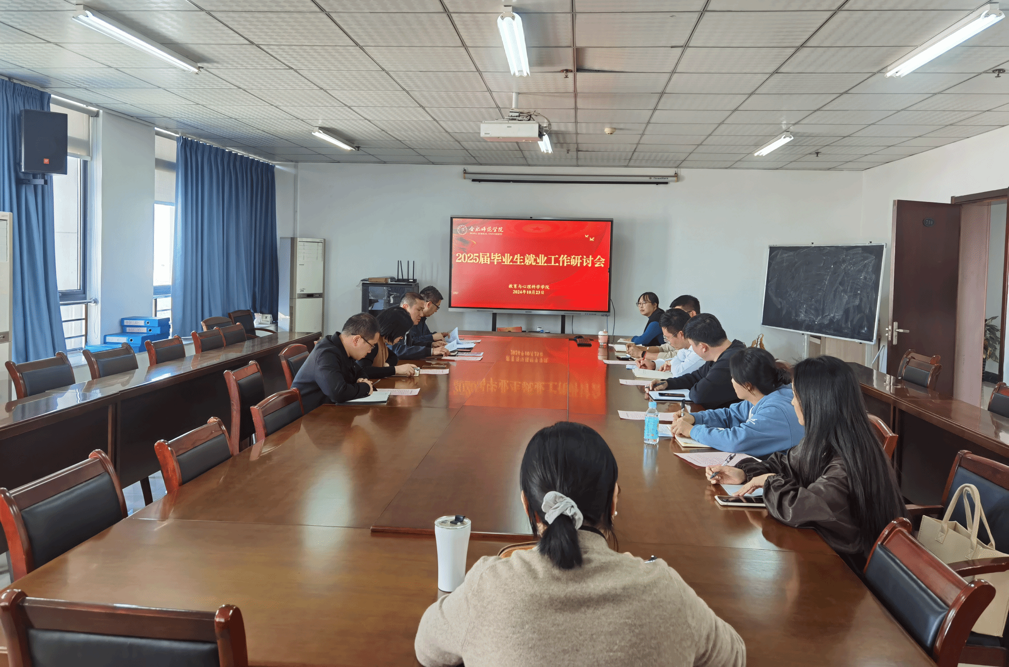 会上,陈帅帅传达了学校就业工作会议精神,通报了学院2024届毕业生就业开展情况,总结了就业工作存在的问题及原因,梳理了2025届毕业生总体情况,分析了当前的就业形势,并对学生考研考编、就业创业指导、征兵入伍等工作做了具体布置。