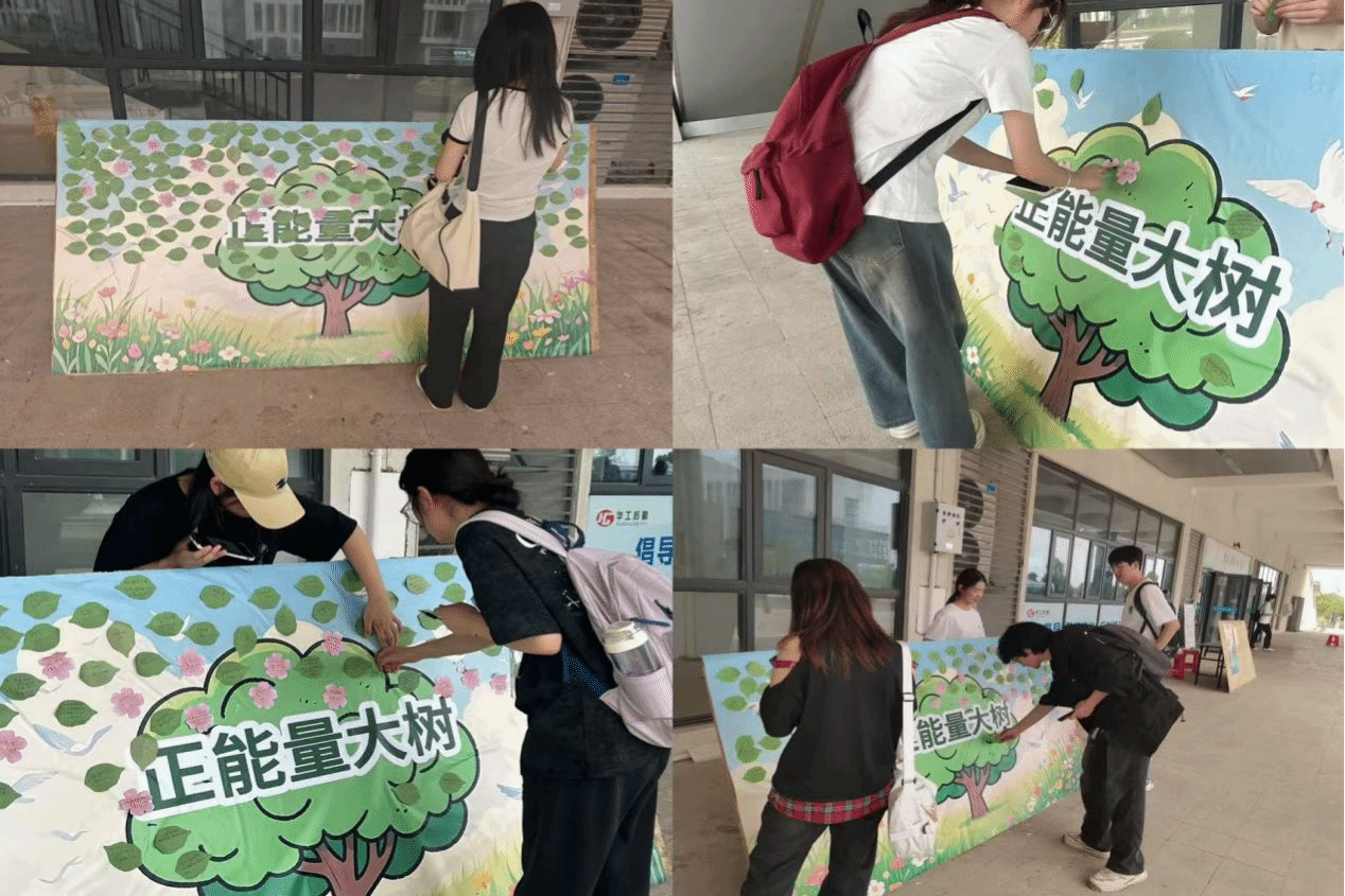 绘就心灵画卷,共赴向阳之旅。为响应学校加强大学生心理健康教育工作的号召,提升学生心理调适能力,近日,beat365中文官方网站在滨湖校区桂园餐厅门前举办“汇聚正能量,共筑心灵树”主题活动,吸引了200余名学生踊跃参与。